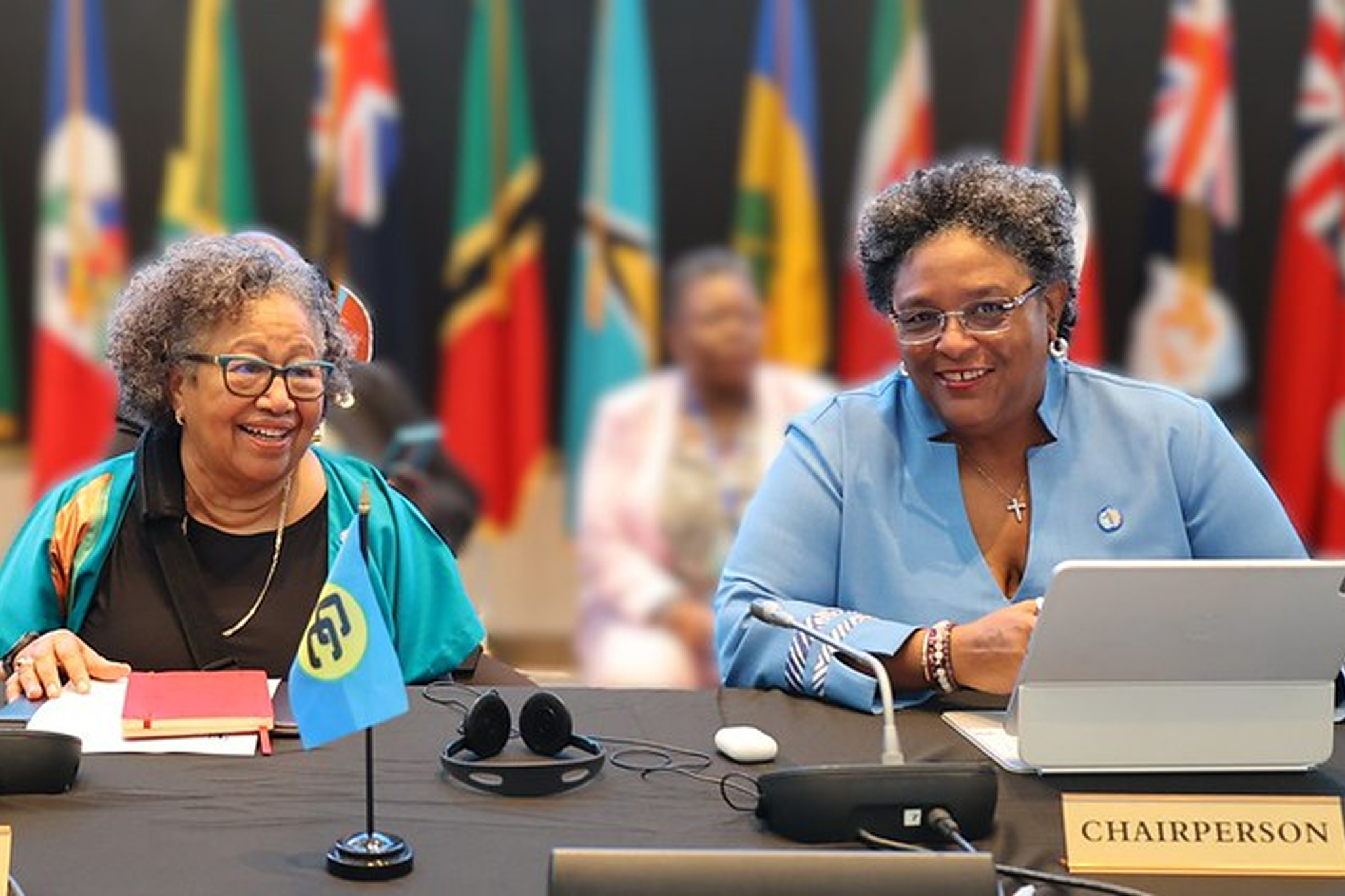 In Photo: (front row, from left): Prime Minister of Belize, Hon John Briceño; Prime Minister of Barbados, Hon Mia Amor...