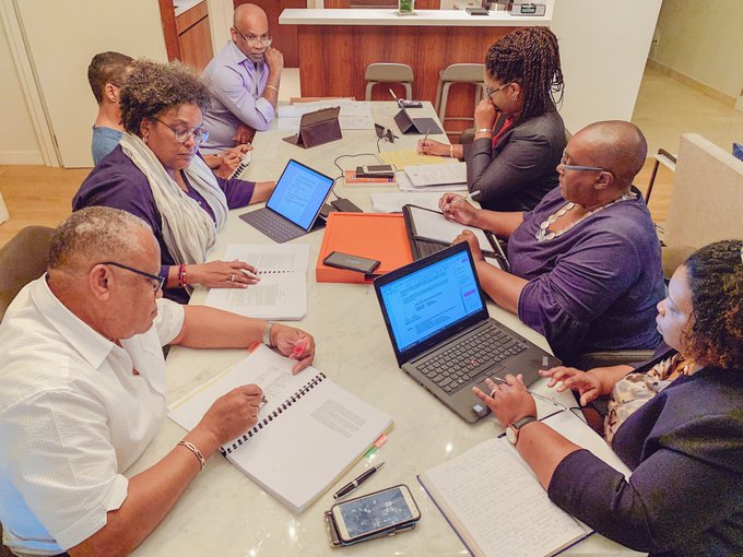Barbados's PM and other government officials preparing for the 18th Special Heads of Government Meeting on the CSME, December 2018