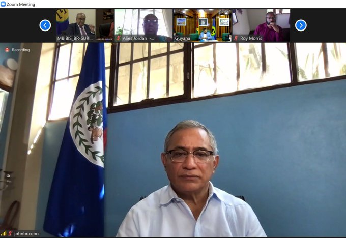 Prime Minister John Briceno participating in the 11th Meeting of the Prime Ministerial Sub-committee on the CSME to look closely at accelerating the region’s implementation of the CSME, June 2021