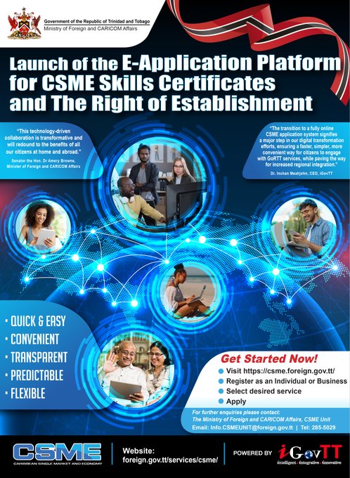 Flyer on the launch of an E-Application for CSME Skilled Certificates in Trinidad and Tobago